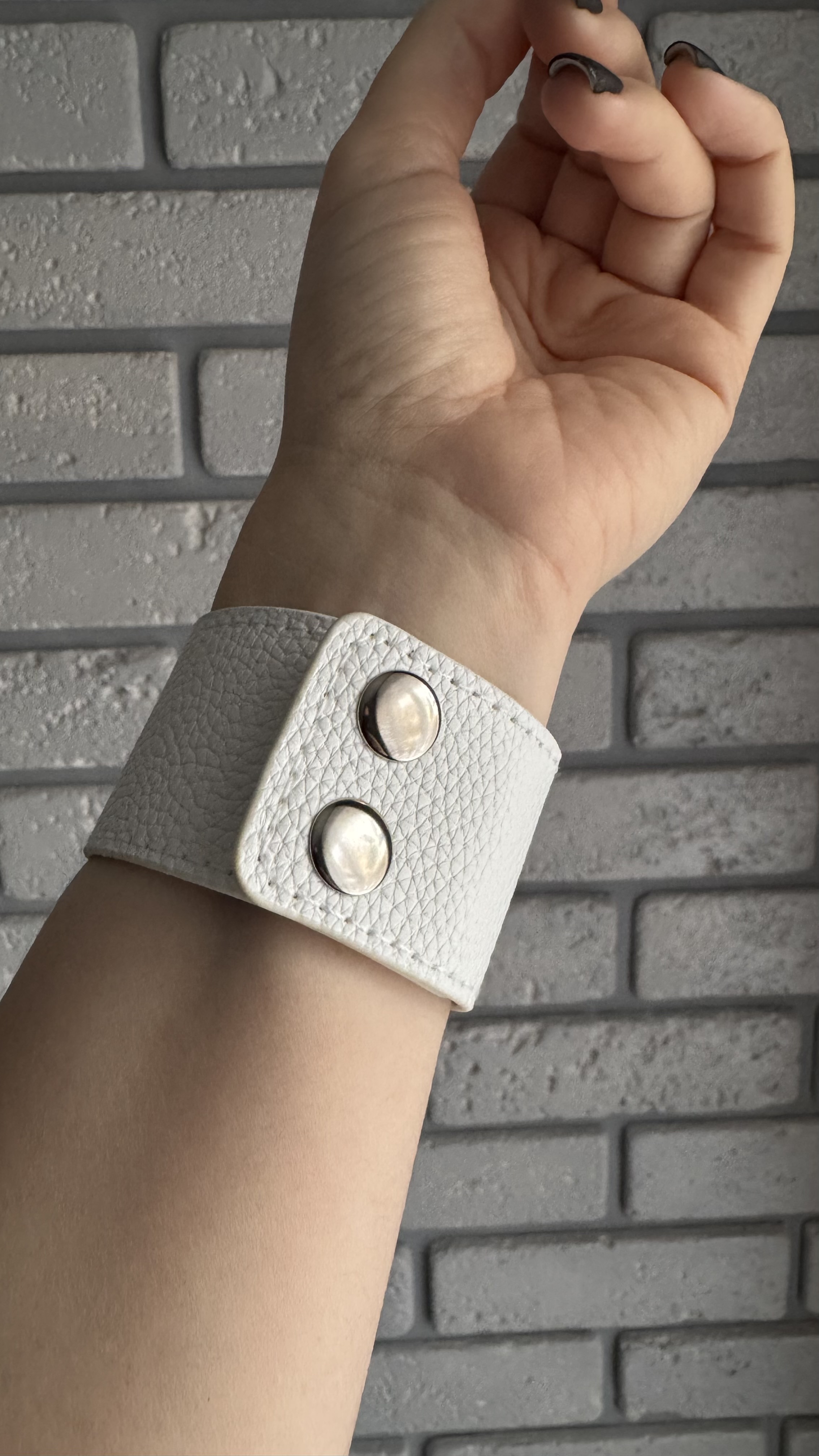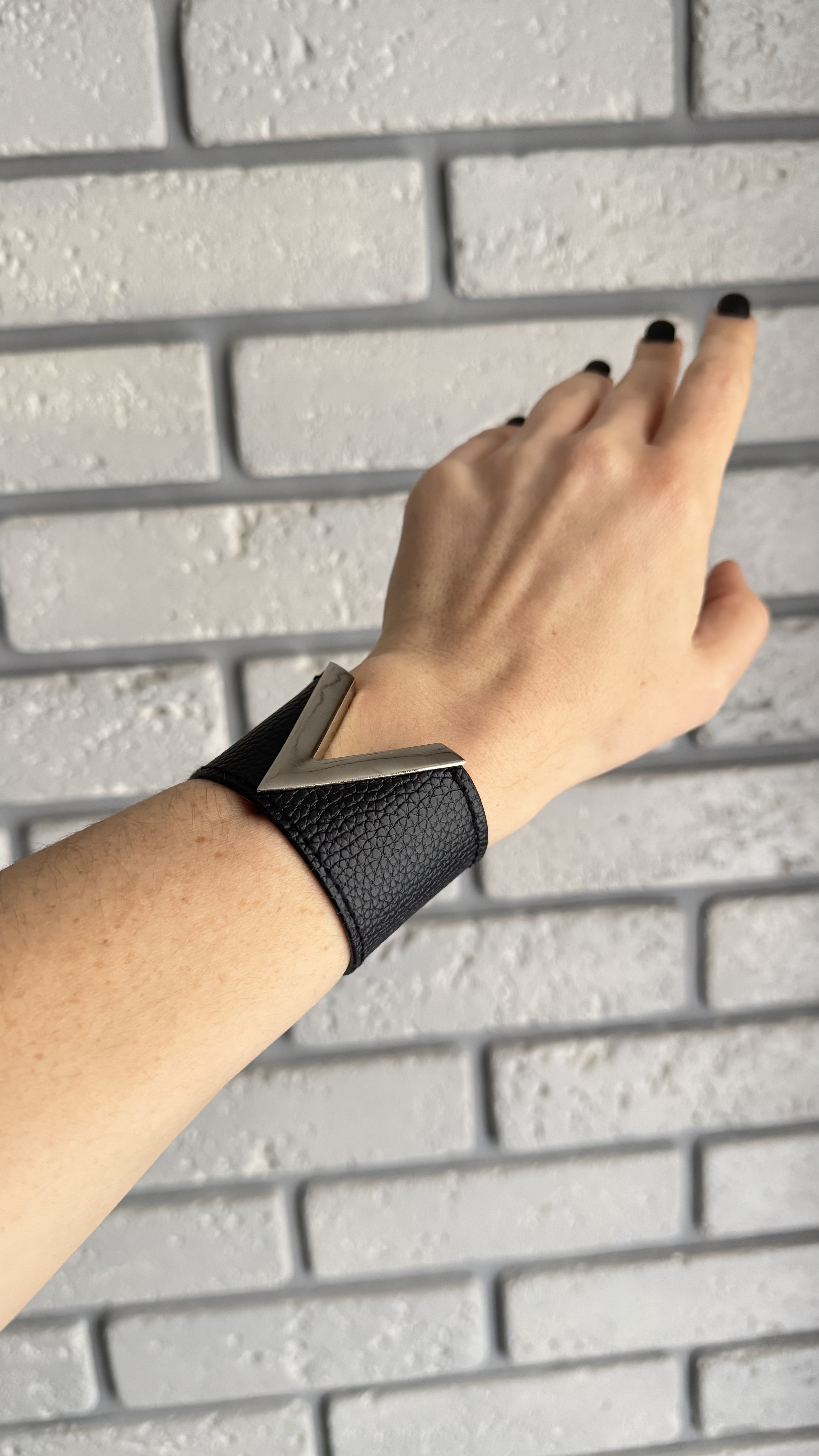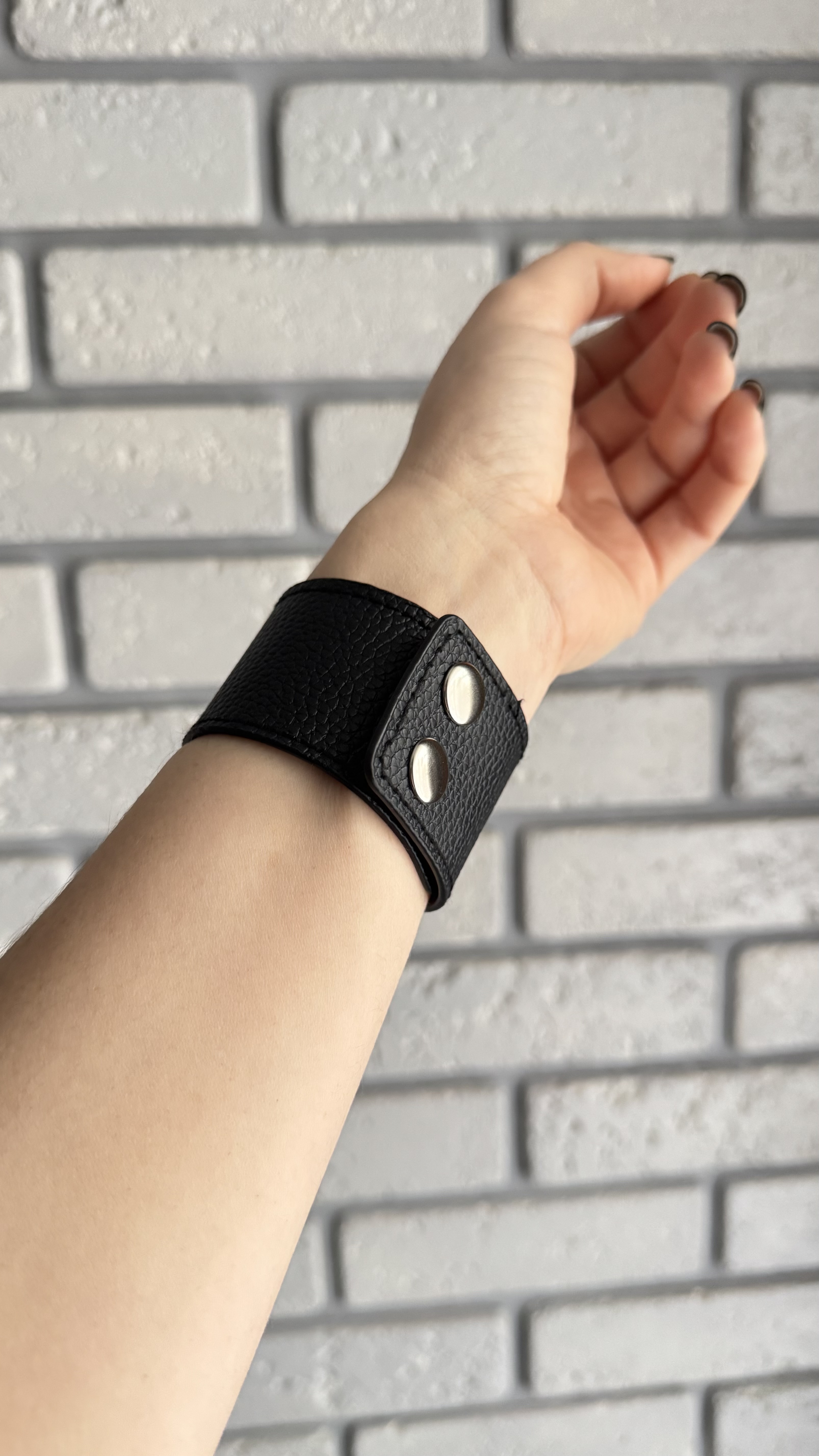 Опис: Елегантний браслет зі штучної шкіри — ідеальний вибір для тих, хто цінує стиль і практичність. Лаконічний дизайн робить його універсальним аксесуаром як для повсякденних, так і для більш сміливих образів.